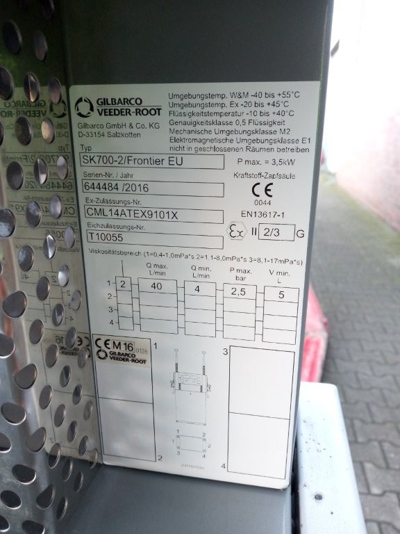 | Zapfsäule-Zählwerk: | Elektronisch, Gilbarco Pulser, Mit ATC-Option |